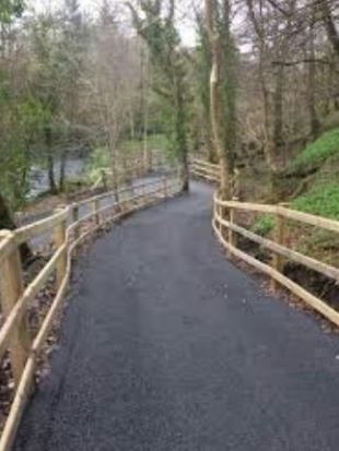 The greenway was designed for shared use by leisure walkers, joggers and cyclists. The trail is suitable for people with moderate levels of fitness. The route is mainly traffic-free and off-road with solid surface, comprising of both tarred and compacted gravel sections. The Greenway is waymarked using fingerpost signage with blue text and symbols on a white background.
